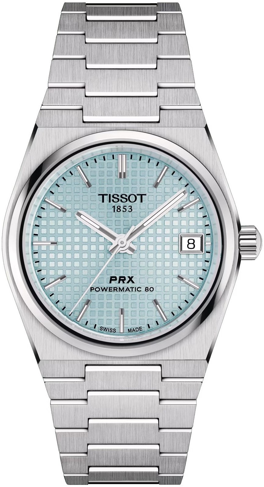 Tissot PRX Powermatic 80 T137.207.11.351.00 sú unisex automatické hodinky na integrovanom oceľovom náramku s brúsenou povrchovou úpravou a motýlikovou sponou. Puzdro z nerezovej ocele má priemer 35 milimetrov a priehľadné viečko. Svetlomodrý číselník s indikáciou dátumu je chránený odolným zafírovým sklom s antireflexnou vrstvou. Jeho jedinečný vaflový vzor dodáva číselníku hĺbku a charakter. Aplikované hodinové indexy sú rovnako ako rúčky pokryté luminiscenčným náterom Super-LumiNova®, ktorý garantuje perfektnú čitateľnosť za zhoršených svetelných podmienok. Pohon hodiniek zaisťuje mechanický strojček Powermatic 80.111 s automatickým náťahom a rezervou chodu približne 80 hodín. Vďaka použitiu antimagnetického vlásku zotrvačky Nivachron™ z titánovej zliatiny, na ktorého vývoji sa spolu so Swatch Group podieľala manufaktúra Audemars Piguet, je tento kaliber vysoko odolný voči vplyvom magnetického poľa. Tento strojček s funkciou hackingu je možné v prípade potreby naťahovať aj ručne pomocou signovanej korunky. Vodotesnosť hodiniek je 10 ATM a sú teda vhodné na kúpanie alebo šnorchlovanie.