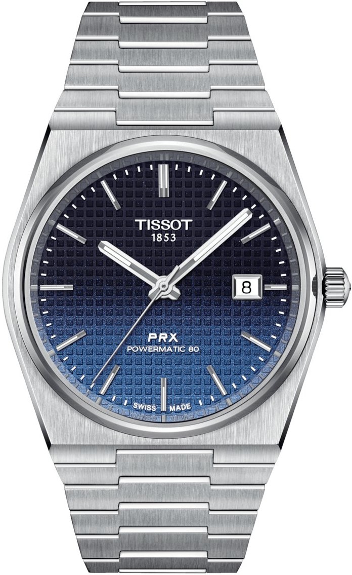 Tissot PRX Powermatic 80 T137.407.11.051.01 sú pánske automatické hodinky na integrovanom oceľovom náramku s brúsenou povrchovou úpravou a motýlikovou sponou. Puzdro z nerezovej ocele má priemer 40 milimetrov a priehľadné viečko. Gradientný modrý číselník s indikáciou dáta je chránený odolným zafírovým sklom s antireflexnou vrstvou. Jeho jedinečný vaflový vzor dodáva číselníku hĺbku a charakter. Aplikované hodinové indexy sú rovnako ako rúčky pokryté luminiscenčným náterom Super-LumiNova®, ktorý garantuje perfektnú čitateľnosť za zhoršených svetelných podmienok. Pohon hodiniek zaisťuje mechanický strojček Powermatic 80 s automatickým náťahom a rezervou chodu približne 80 hodín. Vďaka použitiu antimagnetického vlásku zotrvačky Nivachron™ z titánovej zliatiny, na ktorého vývoji sa spolu so Swatch Group podieľala manufaktúra Audemars Piguet, je tento kaliber vysoko odolný voči vplyvom magnetického poľa. Tento strojček s funkciou hackingu je možné v prípade potreby naťahovať aj ručne pomocou signovanej korunky. Vodotesnosť hodiniek je 10 ATM a sú teda vhodné na kúpanie alebo šnorchlovanie.