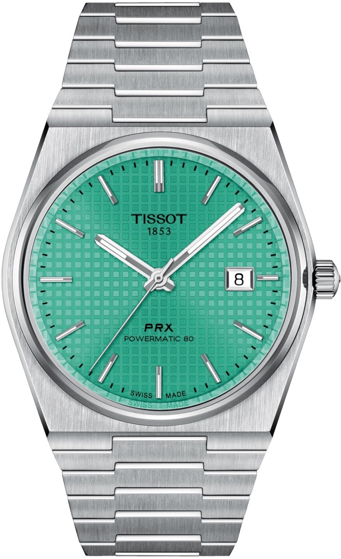 Tissot PRX Powermatic 80 T137.407.11.091.01 sú pánske automatické hodinky na integrovanom oceľovom náramku s brúsenou povrchovou úpravou a motýlikovou sponou. Puzdro z nerezovej ocele má priemer 40 milimetrov a priehľadné viečko. Zelený číselník s indikáciou dáta je chránený odolným zafírovým sklom s antireflexnou vrstvou. Jeho jedinečný vaflový vzor dodáva číselníku hĺbku a charakter. Aplikované hodinové indexy sú rovnako ako rúčky pokryté luminiscenčným náterom Super-LumiNova®, ktorý garantuje perfektnú čitateľnosť za zhoršených svetelných podmienok. Pohon hodiniek zaisťuje mechanický strojček Powermatic 80.111 s automatickým náťahom a rezervou chodu približne 80 hodín. Vďaka použitiu antimagnetického vlásku zotrvačky Nivachron™ z titánovej zliatiny, na ktorého vývoji sa spolu so Swatch Group podieľala manufaktúra Audemars Piguet, je tento kaliber vysoko odolný voči vplyvom magnetického poľa. Tento strojček s funkciou hackingu je možné v prípade potreby naťahovať aj ručne pomocou signovanej korunky. Vodotesnosť hodiniek je 10 ATM a sú teda vhodné na kúpanie alebo šnorchlovanie.