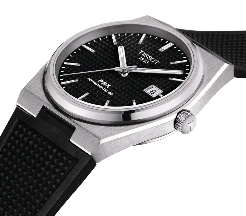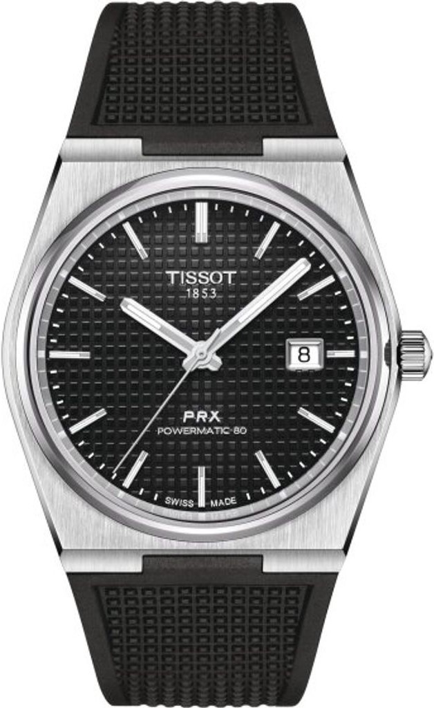 Tissot PRX Powermatic 80 T137.407.17.051.00 sú pánske automatické hodinky na čiernom kaučukovom remienku s tŕňovou sponou. Puzdro z nerezovej ocele má priemer 40 milimetrov a priehľadné viečko. Čierny číselník s indikáciou dátumu je chránený odolným zafírovým sklom s antireflexnou vrstvou. Jeho jedinečný vaflový vzor dodáva číselníku hĺbku a charakter. Aplikované hodinové indexy sú rovnako ako ručičky pokryté luminiscenčným náterom Super-LumiNova®, ktorý garantuje perfektnú čitateľnosť za zhoršených svetelných podmienok. Pohon hodiniek zaisťuje mechanický strojček Powermatic 80.111 s automatickým náťahom a rezervou chodu približne 80 hodín. Vďaka použitiu antimagnetického vlásku zotrvačky Nivachron™ z titánovej zliatiny, na ktorého vývoji sa spolu so Swatch Group podieľala manufaktúra Audemars Piguet, je tento kaliber vysoko odolný voči vplyvom magnetického poľa. Tento strojček s funkciou hackingu možno v prípade potreby naťahovať aj ručne pomocou signovanej korunky. Vodotesnosť hodiniek je 10 ATM a sú vhodné na kúpanie alebo šnorchlovanie.