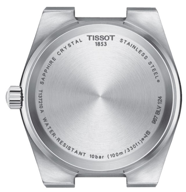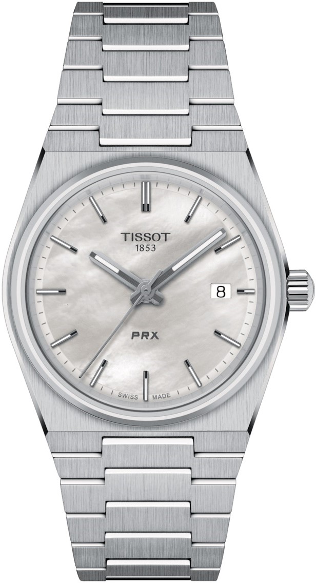 Tissot PRX Quartz T137.210.11.111.00 sú dámske batériové hodinky na integrovanom oceľovom náramku s brúsenou povrchovou úpravou a motýlikovou sponou. Puzdro z nerezovej ocele má priemer 35 milimetrov. Perleťový číselník s indikáciou dátumu je chránený odolným zafírovým sklom a jeho krása vyniká najmä pod priamym svetlom, kedy môžeme pozorovať hru farieb perlete. Aplikované hodinové indexy sú rovnako ako rúčky pokryté luminiscenčným náterom Super-LumiNova®, ktorý garantuje perfektnú čitateľnosť za zhoršených svetelných podmienok. Pohon hodiniek zaisťuje švajčiarsky quartzový strojček ETA F06.115 s indikáciou slabej batérie EOL (End of Life) a s technológiou HeavyDrive, ktorá eliminuje vplyvy silných nárazov na chod strojčeka. Vodotesnosť hodiniek je 10 ATM a sú teda vhodné na kúpanie alebo šnorchlovanie.