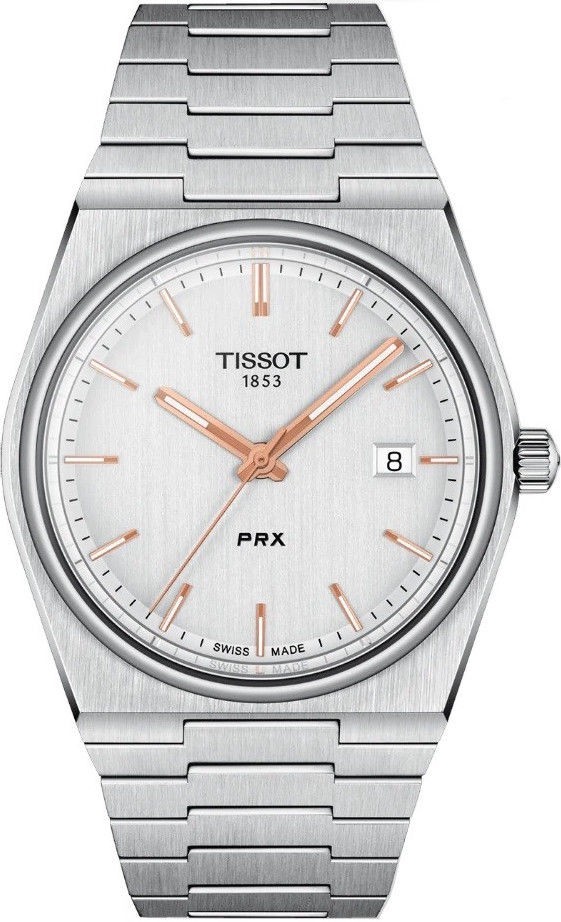 Tissot PRX Quartz T137.410.11.031.00 sú pánske batériové hodinky na integrovanom oceľovom náramku s brúsenou povrchovou úpravou a motýlikovou sponou. Puzdro z nerezovej ocele má priemer 40 milimetrov. Strieborný číselník s jemnou textúrou a indikáciou dátumu je chránený odolným zafírovým sklom. Aplikované hodinové indexy a ručičky vo farbe ružového zlata sú pokryté luminiscenčným náterom Super-LumiNova®, ktorý garantuje perfektnú čitateľnosť za zhoršených svetelných podmienok. Pohon hodiniek zaisťuje švajčiarsky quartzový strojček ETA F06.115 s indikáciou slabej batérie EOL (End of Life) a s technológiou HeavyDrive, ktorá eliminuje vplyvy silných nárazov na chod strojčeka. Vodotesnosť hodiniek je 10 ATM a sú vhodné na kúpanie alebo šnorchlovanie.