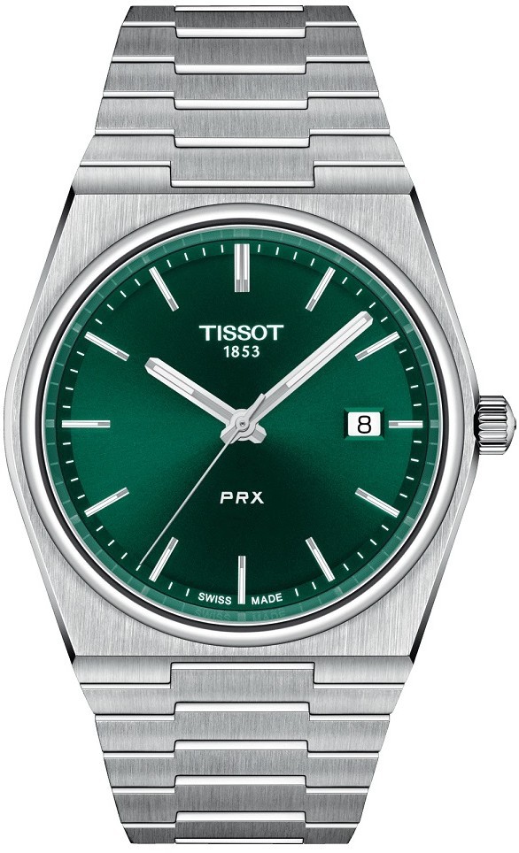 Tissot PRX Quartz T137.410.11.091.00 sú pánske batériové hodinky na integrovanom oceľovom náramku s brúsenou povrchovou úpravou a motýlikovou sponou. Puzdro z nerezovej ocele má priemer 40 milimetrov. Tmavo zelený číselník s efektom slnečného brusu a indikáciou dátumu je chránený odolným zafírovým sklom. Aplikované hodinové indexy sú rovnako ako ručičky pokryté luminiscenčným náterom Super-LumiNova®, ktorý garantuje perfektnú čitateľnosť za zhoršených svetelných podmienok. Pohon hodiniek zaisťuje švajčiarsky quartzový strojček ETA F06.115 s indikáciou slabej batérie EOL (End of Life) a s technológiou HeavyDrive, ktorá eliminuje vplyvy silných nárazov na chod strojčeka. Vodotesnosť hodiniek je 10 ATM a sú vhodné na kúpanie alebo šnorchlovanie.
