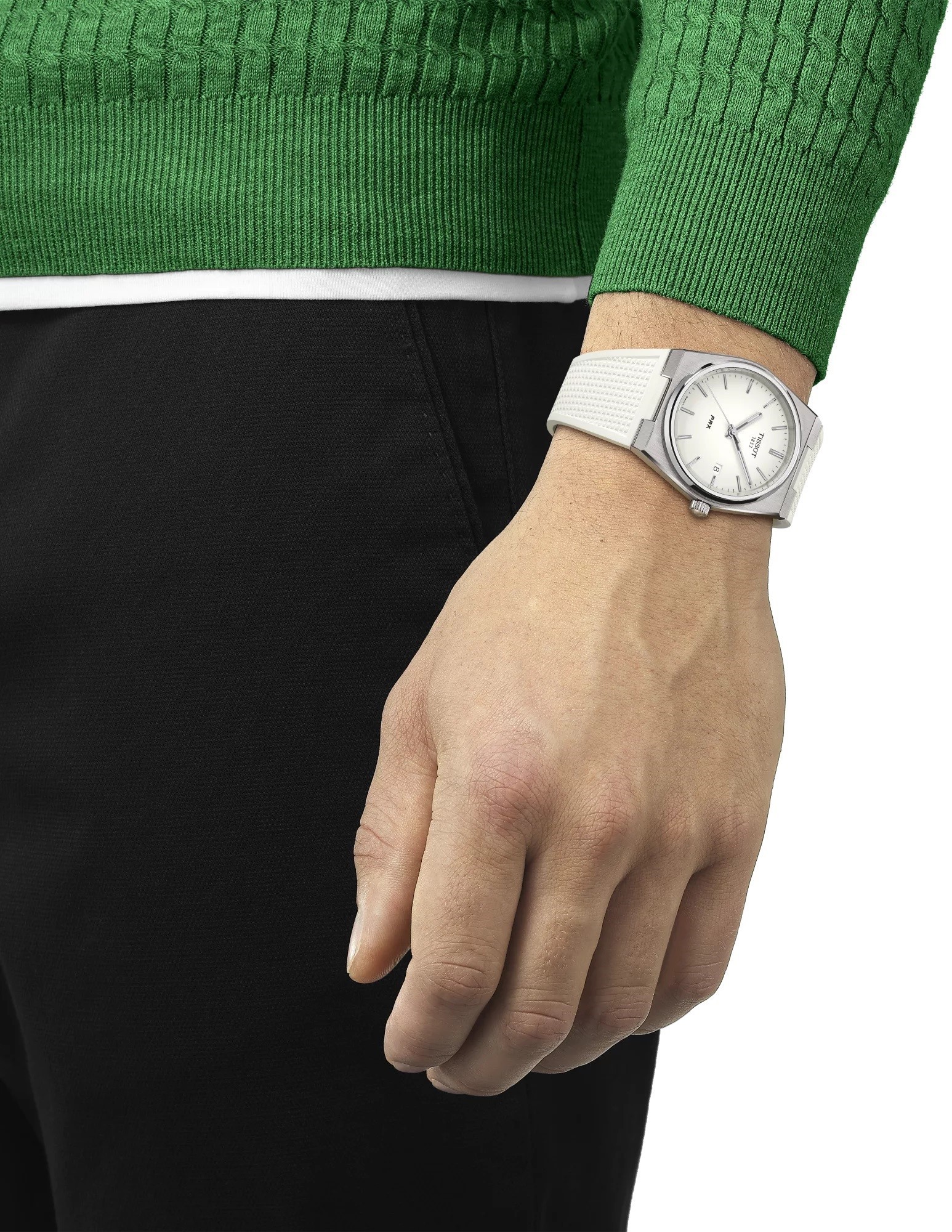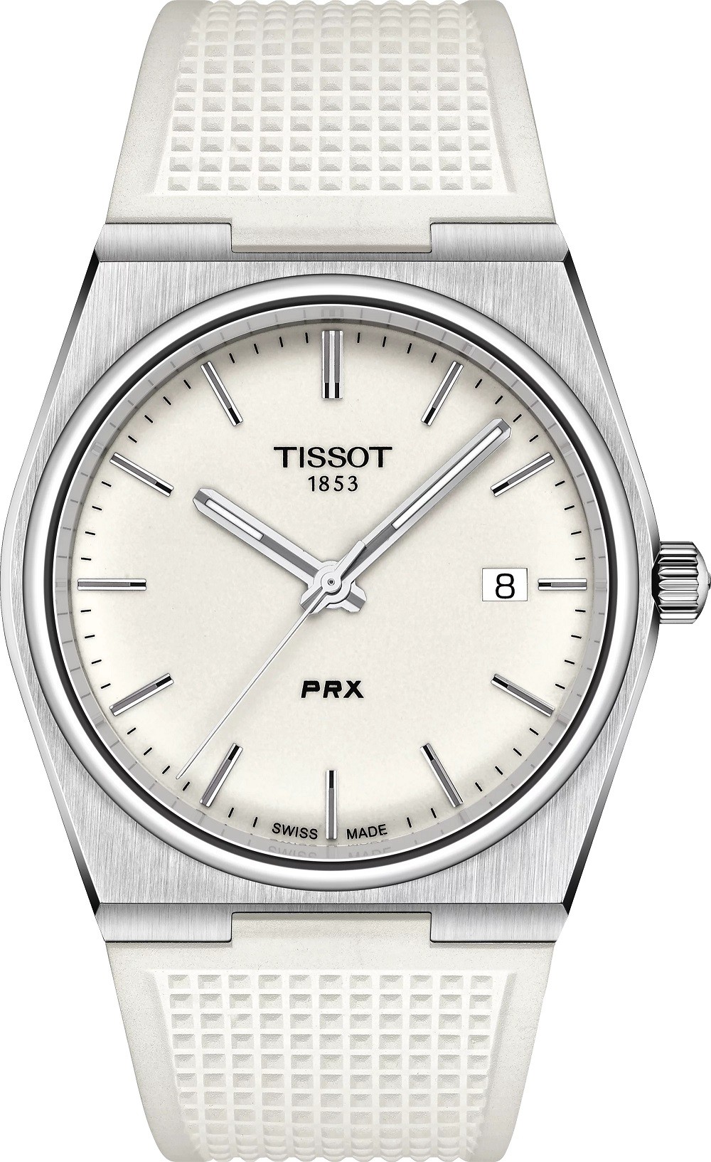 Tissot PRX Quartz T137.410.17.011.00 sú pánske batériové hodinky na bielom kaučukovom integrovanom remienku s motýlikovou sponou. Puzdro z nerezovej ocele má priemer 40 milimetrov. Biely číselník s indikáciou dátumu je chránený odolným zafírovým sklom. Aplikované hodinové indexy sú rovnako ako ručičky pokryté luminiscenčným náterom Super-LumiNova®, ktorý garantuje perfektnú čitateľnosť za zhoršených svetelných podmienok. Pohon hodiniek zaisťuje švajčiarsky quartzový strojček ETA F06.115 s indikáciou slabej batérie EOL (End of Life) a s technológiou HeavyDrive, ktorá eliminuje vplyvy silných nárazov na chod strojčeka. Vodotesnosť hodiniek je 10 ATM a sú vhodné na kúpanie alebo šnorchlovanie.