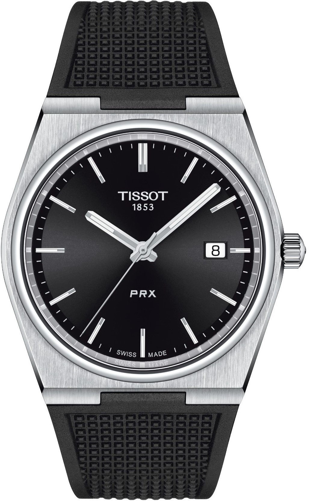 Tissot PRX Quartz T137.410.17.051.00 sú pánske batériové hodinky na čiernom kaučukovom integrovanom remienku s motýlikovou sponou. Puzdro z nerezovej ocele má priemer 40 milimetrov. Čierny číselník s efektom slnečného brusu a indikáciou dátumu je chránený odolným zafírovým sklom. Aplikované hodinové indexy sú rovnako ako ručičky pokryté luminiscenčným náterom Super-LumiNova®, ktorý garantuje perfektnú čitateľnosť za zhoršených svetelných podmienok. Pohon hodiniek zaisťuje švajčiarsky quartzový strojček ETA F06.115 s indikáciou slabej batérie EOL (End of Life) a s technológiou HeavyDrive, ktorá eliminuje vplyvy silných nárazov na chod strojčeka. Vodotesnosť hodiniek je 10 ATM a sú vhodné na kúpanie alebo šnorchlovanie.