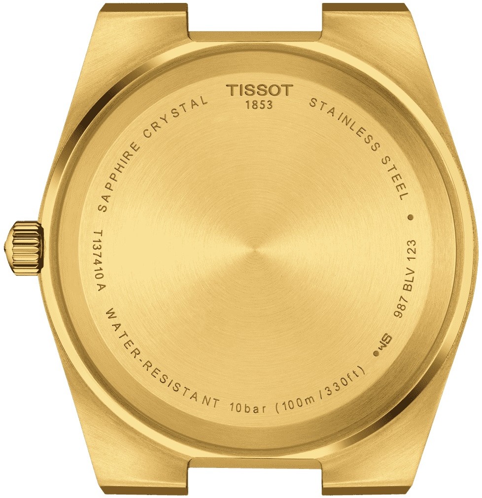 Tissot PRX Quartz T137.410.33.021.00 sú pánske batériové hodinky na integrovanom oceľovom náramku s brúsenou povrchovou PVD úpravou zlatej farby a motýlikovou sponou. Puzdro z nerezovej ocele v rovnakej farbe má priemer 40 milimetrov. Číselník v zlatej farbe s jemnou textúrou a indikáciou dátumu je chránený odolným zafírovým sklom. Aplikované hodinové indexy a ručičky sú pokryté luminiscenčným náterom Super-LumiNova®, ktorý garantuje perfektnú čitateľnosť za zhoršených svetelných podmienok. Pohon hodiniek zaisťuje švajčiarsky quartzový strojček ETA F06.115 s indikáciou slabej batérie EOL (End of Life) a s technológiou HeavyDrive, ktorá eliminuje vplyvy silných nárazov na chod strojčeka. Vodotesnosť hodiniek je 10 ATM a sú vhodné na kúpanie alebo šnorchlovanie.