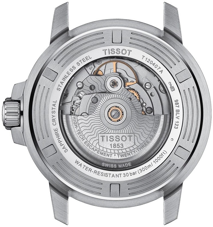 Tissot Seastar 1000 Powermatic 80 T120.407.11.041.03 sú pánske automatické športové hodinky na oceľovom náramku v kombinácii matovania a lesku s preklápacou sponou. Puzdro z nerezovej ocele má priemer 43 milimetrov, priehľadné viečko, jednosmerne otočnú lunetu s keramickou vložkou s minútovou stupnicou a skrutkovaciu korunku. Modrý číselník s efektom slnečného brusu a ukazovateľom dátumu na šiestej hodine je chránený odolným zafírovým sklom s antireflexnou vrstvou. Ručičky a indexy sú spolu s bodom na lunete pokryté luminiscenčným náterom Super-LumiNova®, ktorý garantuje perfektnú čitateľnosť za zhoršených svetelných podmienok. Pohon hodiniek zaisťuje mechanický strojček Powermatic 80.111 s automatickým náťahom a rezervou chodu 80 hodín. S vodotesnosťou 30 ATM sú hodinky vhodné na prístrojové potápanie.