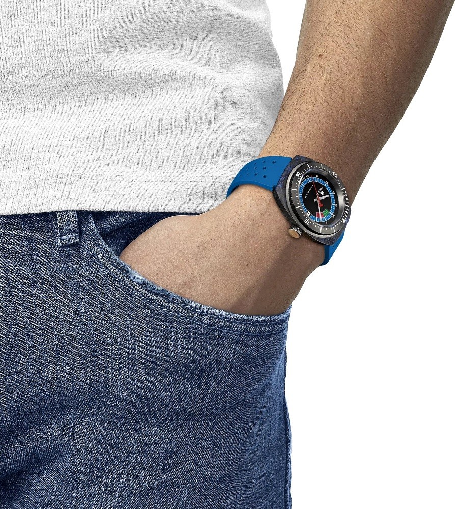 Tissot Sideral S Powermatic 80 T145.407.97.057.01 sú pánske športové automatické hodinky na modrom kaučukovom remienku. Puzdro z karbónu a ocele má priemer 41 milimetrov, priehľadné viečko a skrutkovaciu korunku. Čierny retro číselník je chránený odolným zafírovým sklom s antireflexnou vrstvou. Aplikované hodinové indexy sú rovnako ako ručičky a ďalšie detaily na číselníku pokryté luminiscenčným náterom Super-LumiNova®, ktorý garantuje perfektnú čitateľnosť za zhoršených svetelných podmienok. Pohon hodiniek zaisťuje mechanický strojček Powermatic 80.111 s automatickým náťahom a rezervou chodu približne 80 hodín. Tento strojček s funkciou hackingu možno v prípade potreby naťahovať aj ručne pomocou signovanej korunky. Vodotesnosť hodiniek je 30 ATM a sú vhodné na kúpanie, šnorchlovanie a potápanie.