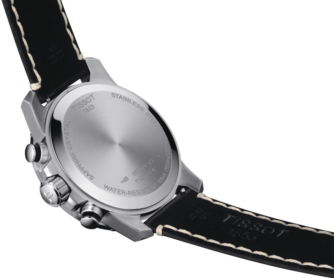 Tissot Supersport Chrono T125.617.16.051.00 sú pánske hodinky na čiernom koženom remienku s kontrastným prešívaním a tŕňovou sponou. Puzdro z nerezovej ocele má priemer 45,5 milimetra a pevnú čiernu hliníkovú lunetu s tachymetrickou stupnicou. Čierny číselník s efektom slnečného brusu je chránený odolným zafírovým sklíčkom. Ručičky a aplikované indexy sú potiahnuté luminiscenčným náterom Super-LumiNova®, ktorý garantuje perfektnú čitateľnosť za zhoršených svetelných podmienok. Pohon hodiniek zaisťuje quartzový strojček ETA G10.212 s maximálnou dennou odchýlkou v presnosti chodu rádovo +/- 0,1 sekúnd. Hodinky disponujú funkciou stopiek, dátumovkou a indikáciou slabej batérie. S vodotesnosťou 10 ATM sú vhodné na kúpanie alebo šnorchlovanie.