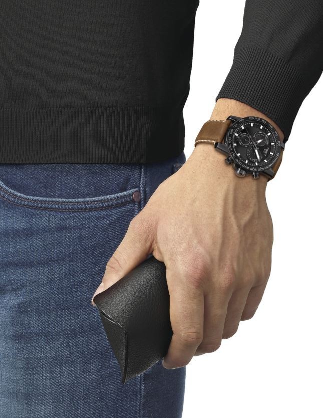 Tissot Supersport Chrono T125.617.36.051.01 sú pánske športové hodinky na hnedom koženom remienku s kontrastným prešívaním a tŕňovou sponou. Puzdro z nerezovej ocele s čiernou PVD úpravou má priemer 45,5 milimetra a pevnú čiernu hliníkovú lunetu s tachymetrickou stupnicou. Čierny číselník s efektom slnečného brusu je chránený odolným zafírovým sklíčkom. Ručičky a aplikované indexy sú potiahnuté luminiscenčným náterom Super-LumiNova®, ktorý garantuje perfektnú čitateľnosť za zhoršených svetelných podmienok. Pohon hodiniek zaisťuje quartzový strojek ETA G10.212 s maximálnou dennou odchýlkou v presnosti chodu rádovo +/- 0,1 sekúnd. Hodinky disponujú funkciou stopiek, dátumovkou a indikáciou slabej batérie. S vodotesnosťou 10 ATM sú vhodné na kúpanie alebo šnorchlovanie.