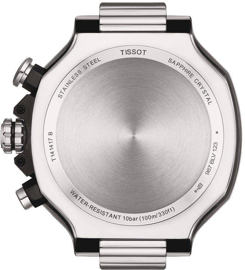 Tissot T-Race Chronograph T141.417.17.011.00 sú pánske batériové športové hodinky na čiernom kaučukovom remienku s tŕňovou sponou. Puzdro z nerezovej ocele má priemer 45 milimetrov a vnútornú lunetu s tachymetrickou stupnicou. Biely štruktúrovaný číselník s indikáciou dátumu a chronografom je chránený odolným zafírovým sklom s antireflexnou vrstvou. Aplikované hodinové indexy sú rovnako ako ručičky pokryté luminiscenčným náterom Super-LumiNova®, ktorý garantuje perfektnú čitateľnosť za zhoršených svetelných podmienok. Pohon hodiniek zaisťuje quartzový strojček ETA G10.212 s presnosťou +/- 10 sekúnd za rok a indikáciou slabej batérie. Vodotesnosť hodiniek je 10 ATM a sú vhodné na kúpanie alebo šnorchlovanie.