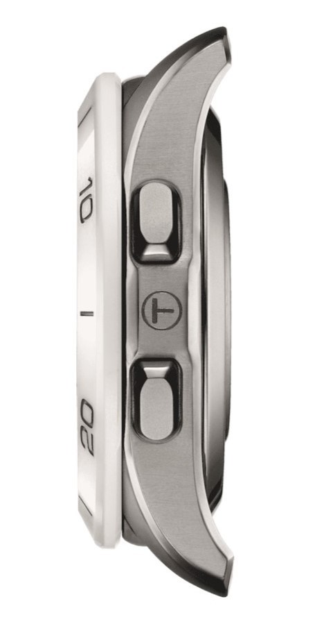 Sportovní design hodinek zajišťuje antimagnetické titanové pouzdro o průměru 43,75 milimetru. Dotykový kombinovaný displej je chráněný safírovým sklem. Na pouzdro plynule navazuje silikonový řemínek bílé barvy opatřený trnovou sponou. Hodinky jsou vodotěsné do 50 metrů a napájeny solární energií. Další možností je použití bezdrátové nabíječky, se kterou hodinky dosáhnou úplného nabití přibližně za 1,5 hodiny.