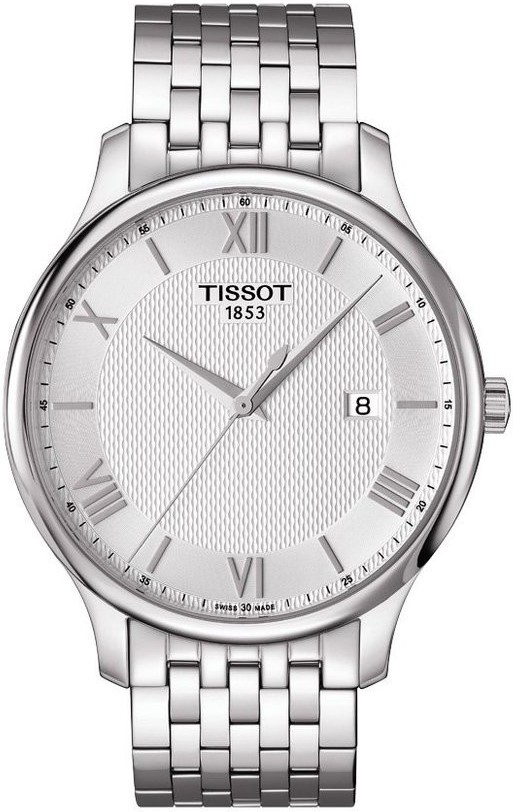 Tissot Tradition T063.610.11.038.00 sú pánske batériové hodinky v klasickom štýle na oceľovom náramku s motýlikovou sponou. Puzdro z nerezovej ocele má priemer 42 milimetrov. Strieborný textúrovaný číselník s ukazovateľom dátumu na tretej hodine je chránený odolným zafírovým sklom. Pohon hodiniek zaisťuje švajčiarsky quartzový strojček ETA F06.111 s indikáciou slabej batérie. S vodotesnosťou 3 ATM sú hodinky odolné proti dažďu a pri umývaní rúk.