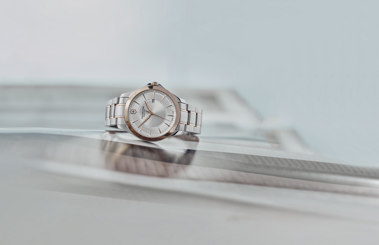 Victorinox Alliance 241912 sú pánske klasické batériové hodinky na oceľovom bicolor náramku s motýlikovou sponou. Dva rady náramku, luneta a korunka disponujú povrchovou PVD úpravou vo farbe ružového zlata. Puzdro z nerezovej ocele má priemer 40 milimetrov. Strieborný číselník s efektom slnečného brusu a ukazovateľom dátumu na tretej hodine je chránený odolným zafírovým sklom s antireflexnou vrstvou. Ručičky a indexy pokrýva luminiscenčný náter SuperLuminova, ktorý po nasvietení garantuje perfektnú čitateľnosť za zhoršených svetelných podmienok. Pohon hodiniek zaisťuje švajčiarsky quartzový strojček. S vodotesnosťou 10 ATM sú hodinky vhodné na plávanie a šnorchlovanie.