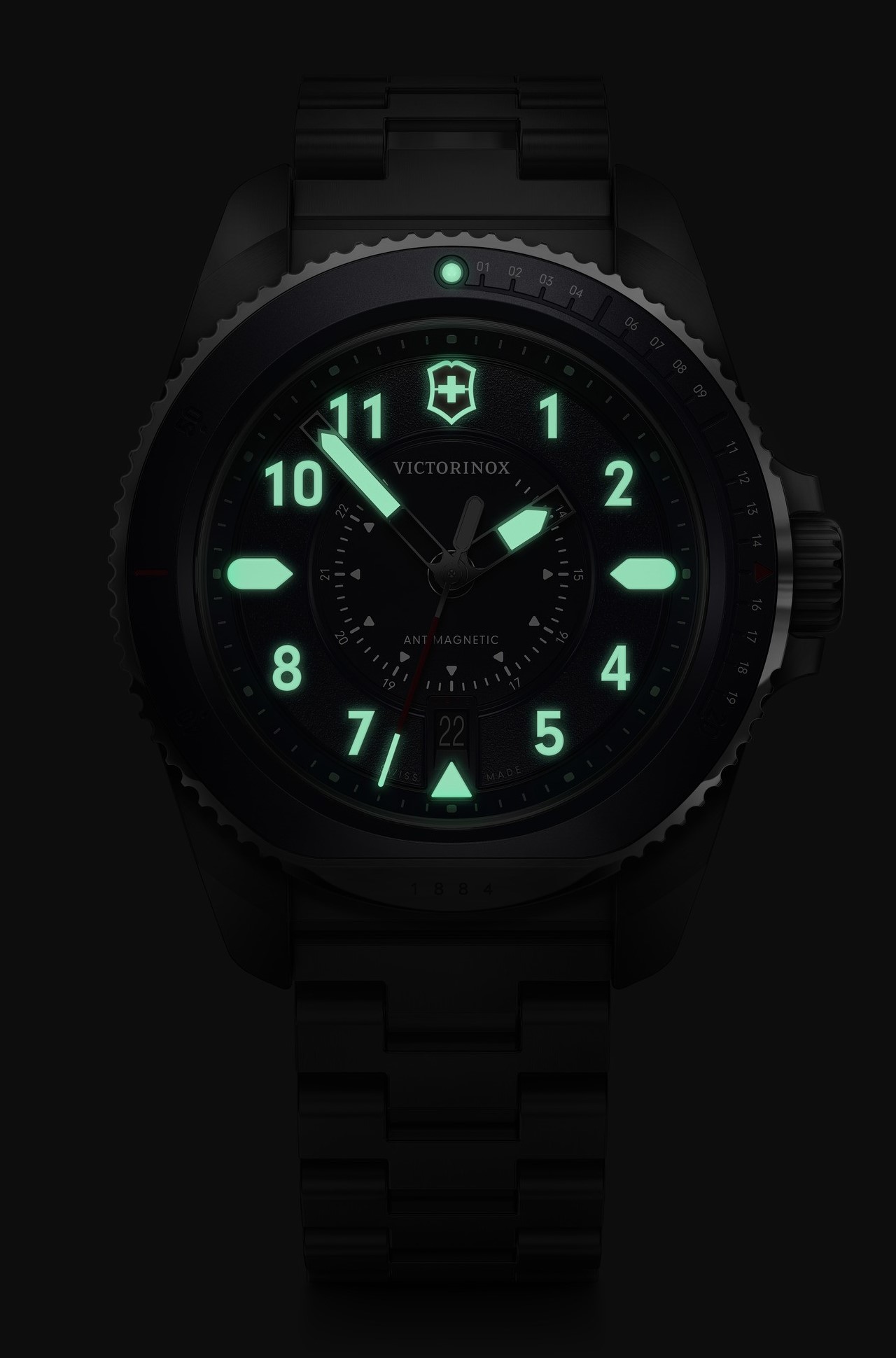 Victorinox Journey 1884 Quartz 241978 sú pánske batériové hodinky v klasickom štýle na oceľovom náramku s brúsenou povrchovou úpravou a motýlikovou sponou. Puzdro z nerezovej ocele má priemer 43 milimetrov, jednosmerne otočnú lunetu s modrou keramickou vložkou a skrutkovaciu korunku. Tmavomodrý číselník s 24-hodinovým formátom zobrazenia času a ukazovateľom dátumu je chránený odolným zafírovým sklom s antireflexnou vrstvou. Ručičky, indexy a bod na lunete pokrýva luminiscenčný náter SuperLuminova®, ktorý po nasvietení garantuje perfektnú čitateľnosť za zhoršených svetelných podmienok. Pohon hodiniek zaisťuje švajčiarsky quartzový strojček Ronda 715 s funkciou indikácie slabej batérie. S vodotesnosťou 20 ATM sú hodinky vhodné pre hlbinné potápanie.